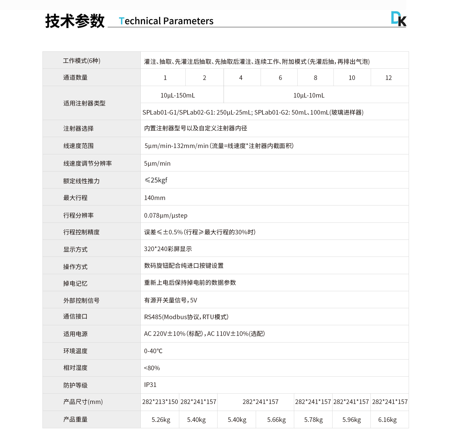 線速度范圍:5μm/min-132mm/min(流量=線速度*注射器內(nèi)截面積)