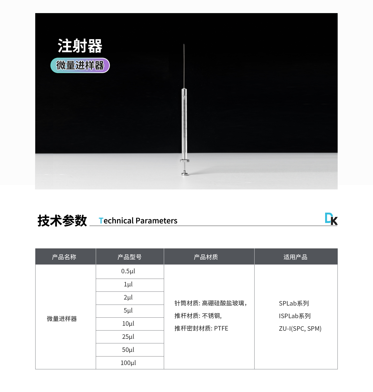 注射器型號:0.5μL、1μL、2μL、5μL、10μL、25μL、50μL、100μL